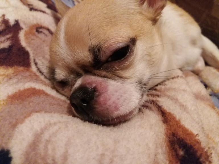 Болезни любимцевНикак не вылечить мне пупсика. История болезни и фото кому интересно под катом. Началось с того, что покраснели и опухли веки. Обратилась к врачу, назначили а/б в уколах и наружно. Предположили аллергию. Через несколько дней покраснели внутри ушки и глазки прям совсем опухли. Что б снять отек кололи дексаметазон. Через несколько дней стало немного лучше. На осмотре врач сказал, что все что он знал, он назначил, если лучше не станет, искать офтальмолога. Через пару дней глаза опять опухли, вокруг носа мордочка тоже, уши красные. При всем при этом настроение и аппетит в норме. Повела к другому врачу. Для снятия оттека опять дексаметазон. По анализу крови аллергии нет, есть воспаление. Назначили а/б в табл и наружно куча мазей.Стало проходить. Но через неделю появились покраснения на носу. Врач сказала, что это не инфекция, не аллергия, не подкожный клещ. Предположила ювенильный целлюлит, есть такая бяка. Лечится а/б и преднизолоном. Лечили...глаза и ушки пришли в норму, ттт. Но вот на носу стало хуже и на подбородке появилось сильное покраснение с болячками. Курс лечения и дозу увеличили, но не фига не лчше. Моя бедная собачулька весом 1.300 столько таблеток сьела. Уже больше месяца лечу ее. Как думаете, что это может быть.