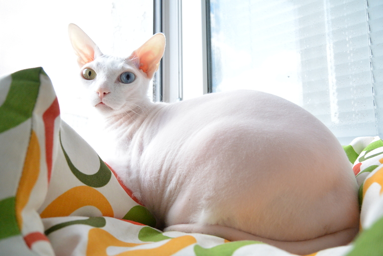Наши любимцы!Чуть более 9 лет назад в семье кошатников выставочный петерболд полюбил ангорскую кошечку. Один из результатов этой любви поселился у нас дома