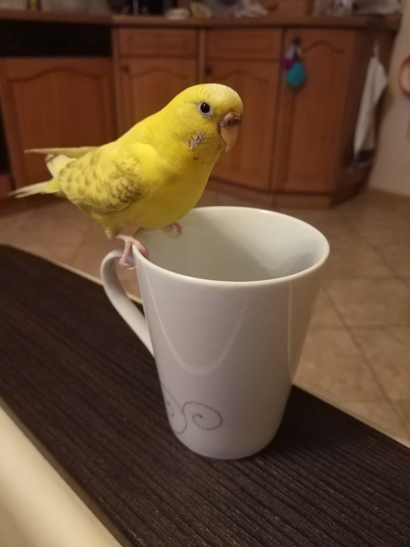 Характер вредный достаточно))) У нее свой режим дня и если мы на кухне задерживаемся после 22 часов, начинает верещать (мне кажется птичьим матом), очень противным голосом чтобы мы ушли и спать не мешали) Еще не любит когда муж с работы приходит и садится рядом с клеткой, она ходит по клетке и орет пытаясь его переговорить и перекричать))) А со мной мурчит прям и на плече сидит воркует. С сыном уроки делает бегая за ручкой или карандашом)