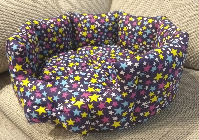 Лежанка выполнена из натуральной ткани - бязи и наполнена холофайбером +поролон.