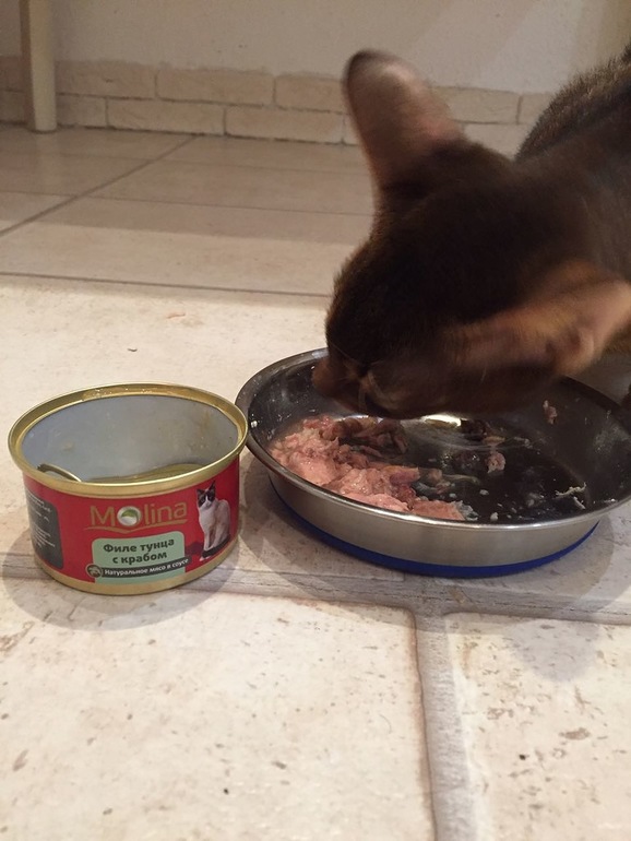 Интересное о животныхКонсервы Mоlina - мне кажется, лучшее, что я подобрала за последнее время для своего кота и собачки. Кот не каждые консервы ел, а собаке после некоторых видов консервов становилось, не очень скажет так хорошо. Несварение в желудке было. И подбирала долго. Нудно..пока не наткнулась на консервы фирмы Молина. Производство Тайланд, объем баночки 80 грамм для котиков, и 85 для собачек. Кстати ассортимент консервов хороший, всегда покупаю несколько вкусов. Состав полностью натуральный. Животинка моя трескает с огромным удовольствием. Даже кот съедает все до капельки. У собаки прошло несварение. Все как по часам работает. Животные веселые, активные. В корме этом мне понравилось еще то, что мясо разделено на волокна, то есть видно, что натуральное мясо, а не соя в кубиках или в виде паштета. Из недостатков могу отметить только то, что консервы эти очень быстро расхватывали в ближайшем зоомагазине и я не всегда успевала их закупить с поставки)) приходится заказывать в интернет-магазинах).Но это все мелочи, главное животные здоровы. И я спокойна, что не надо бегать по магазинам и ломать голову, чем бы их накормить.Да еще хочу отметить, у кота моего даже шерсть лезть перестала и блестит. Я в общем в восторге от этих консервов.Хоть сама ешь))).
