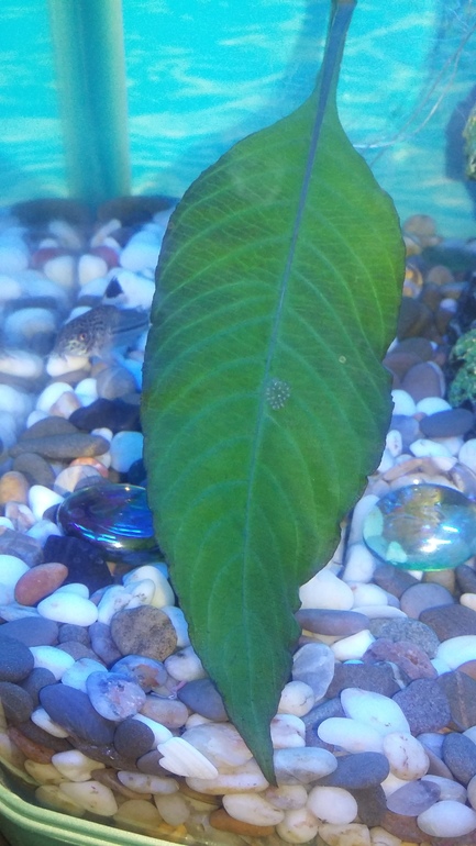 Рыбки, аквариумыВчера купила лимонник в аквариум, а сегодня увидела икру😯 на листочке. В аквариуме только гуппи и два сомика один на фото а др который прячется все время. Что делать с этой икрой? Чья она может быть? Фото под катом