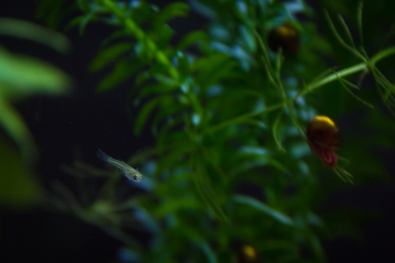 Сказано-сделано. Кидаю водоросли, а на дне пакета МАЛЁК лежит! аааа. не шевелится! И прям меньше миллиметра, прозрачный. личинка даже, не малёк.