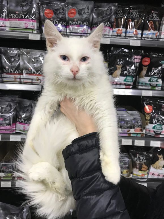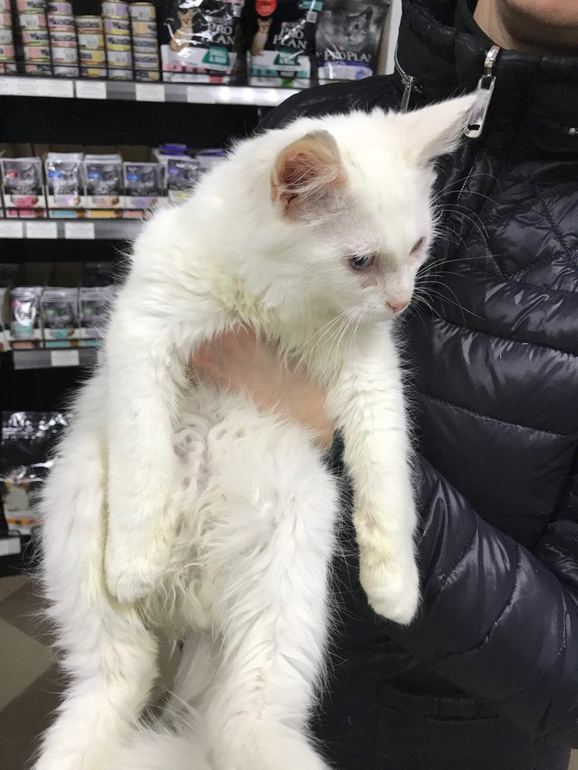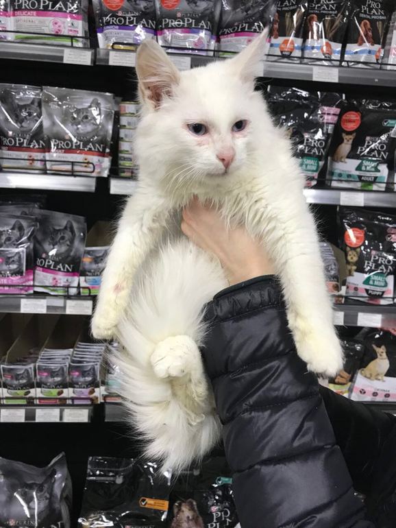 На моего Умку похож))) Он наверное глухой, раз глаза голубые. Может его хозяева ищут. Если бывший домашний?