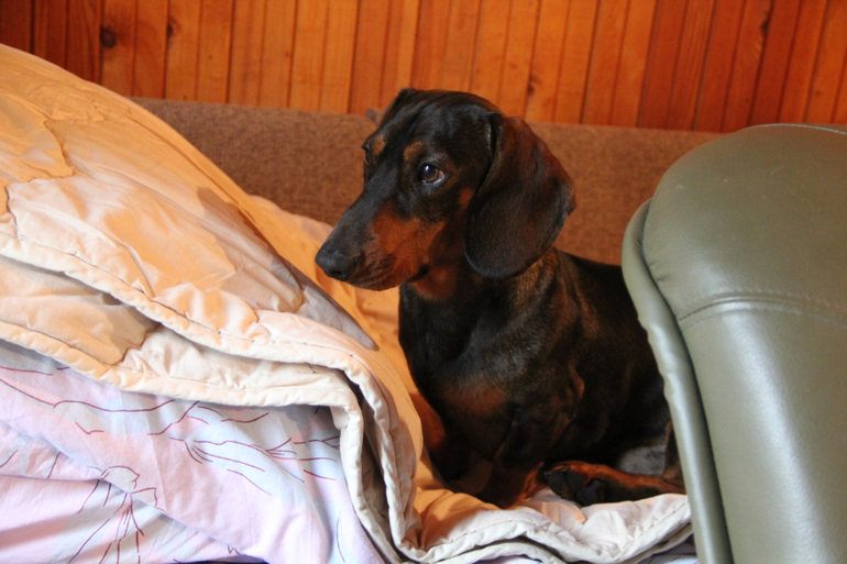 А еще такса наша оооочень любит тепло. Может всю ночь спать под одеялом ( и морду под одеялом). При этом очень желательно под моим одеялом вместе со мной.