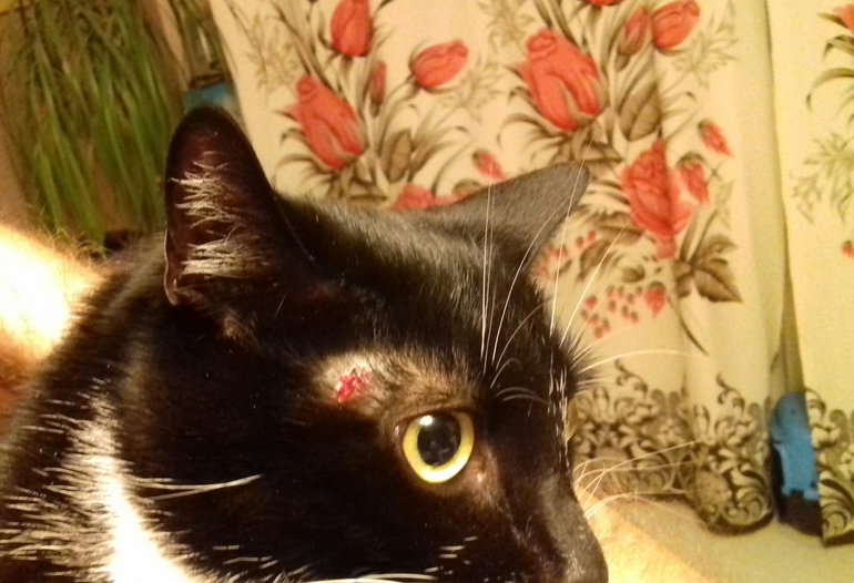 Болезни любимцевДобрый вечер, девочки. Молодой кот, разодрал бровь, не скажу что постоянно чешет, но какой-то дискомфорт у него место вызывает. Корка то подсыхает и почти незаметна, то опять в режиме "мокрит и подкравливает". Только в одном этом месте, кроме этого повреждений на коте нет, поведение и физиология в абсолютной норме. Корм не меняли (сушка одна и та же рекомендованная ветом пару лет), новых растений в дом не вносили, нет у меня предположений, на что бы погрешить. Кто не брезгливый, прошу под кат посмотреть на моего котейку.