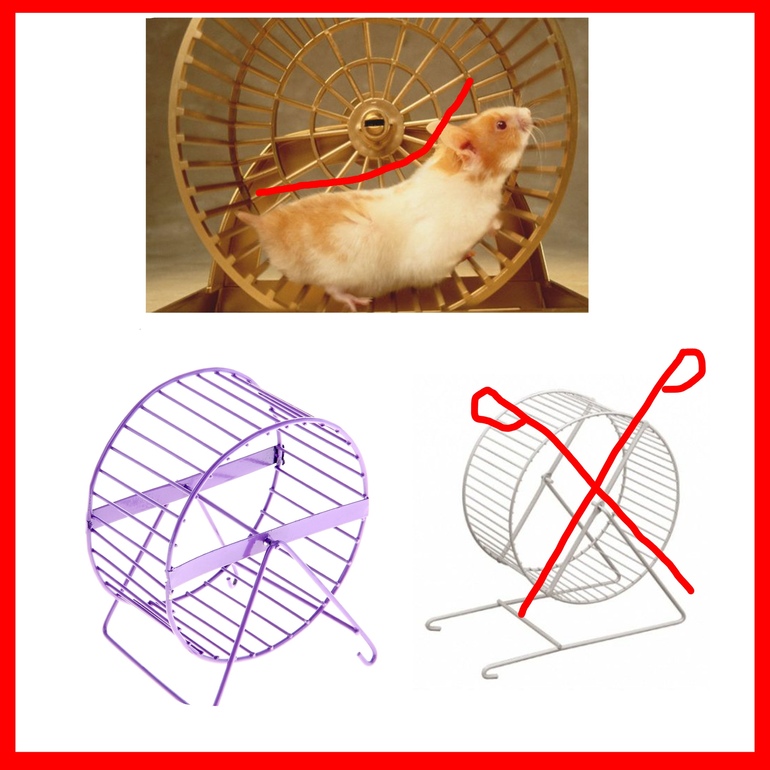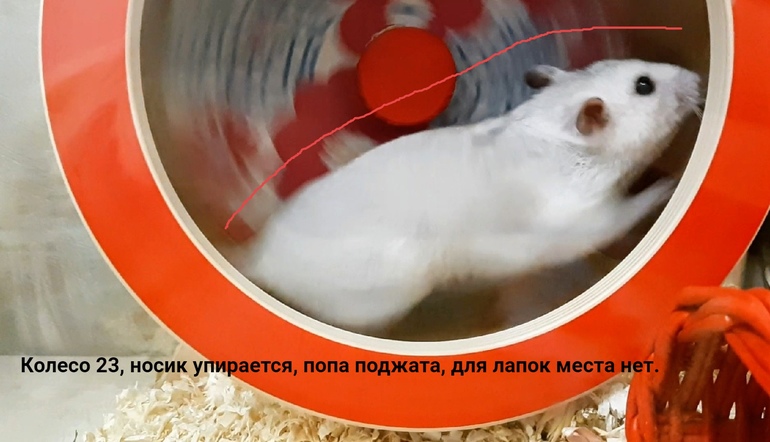 Беговые колёса бывают разными, выбор огромен, и чтобы хоть как то сократить список сразу будем рассматривать колёса подходящие по размеру, а это от 18 см в диаметре для карликовых видов и от 25 для сирийских хомяков и оно должно быть безопасным! Маленькое колесо может привести к травмам позвоночника (стирание межпозвонковых дисков), к ожирению (в следствии диабету или отказу органов и смерти). Стоит обратить внимание на так называемый "эффект ножниц", основная опасность - переломы, вывихи. А так же на беговую поверхность, решетчатая поверхность опасна, лапки могут провалиться между прутьями и самое малое что случится в этом случае - содранная кожа.