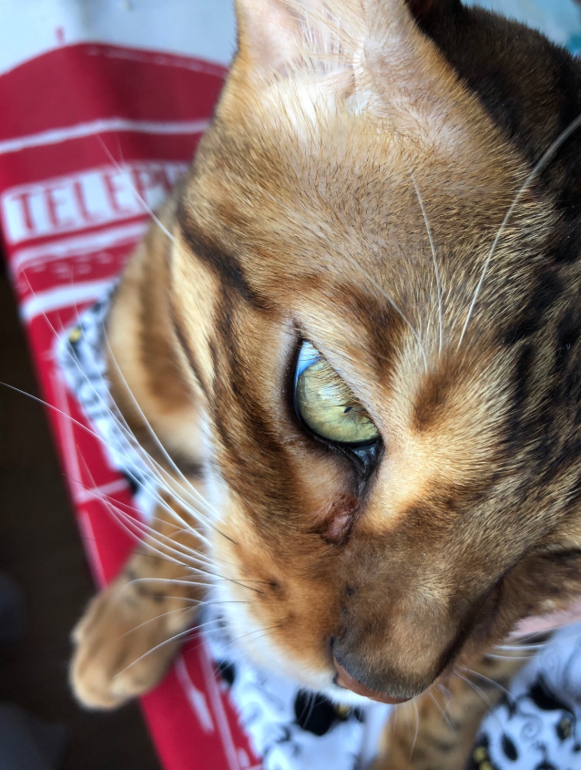 Глаза текут? У моей бенгалки регулярно. Ветеринар говорит - аллергия. Похоже на царапину.