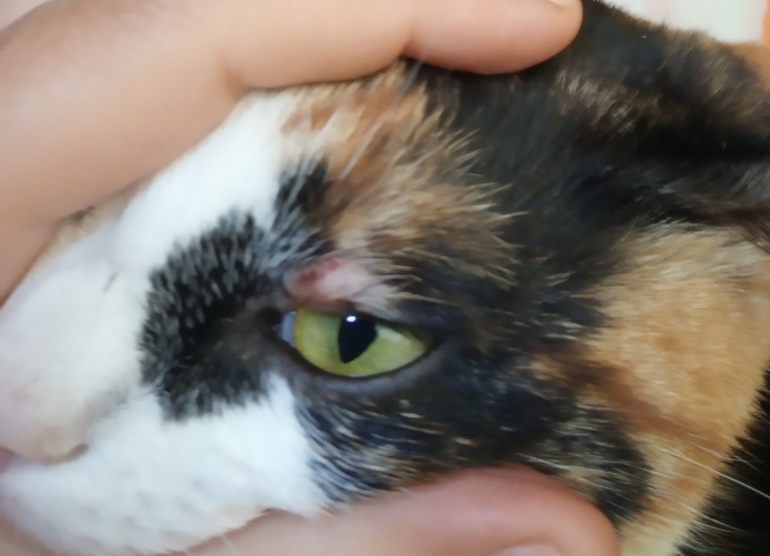 Котэ вышла на даче погулять,а вечером обнаружилось подобное над глазом. Это похоже на след от драки? Как-то обрабатывать надо?