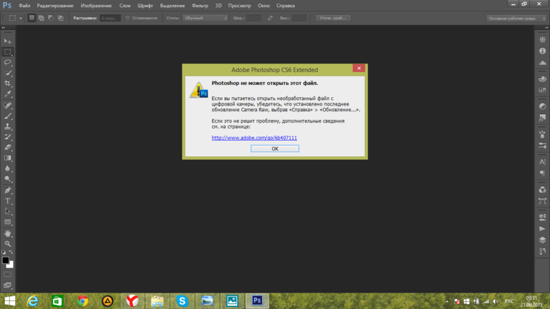мне нужна помощьЯ не понимаю в чем дело. Купили камеру Кенон 6D. Сегодня я ,счастливая , поснимала на улице. Сейчас хочу немного обработать в фотошопе. А у меня не открываются фотографии. Я даже переустановила заново программу. И опять вылазит это окошко(((( В чем дело???