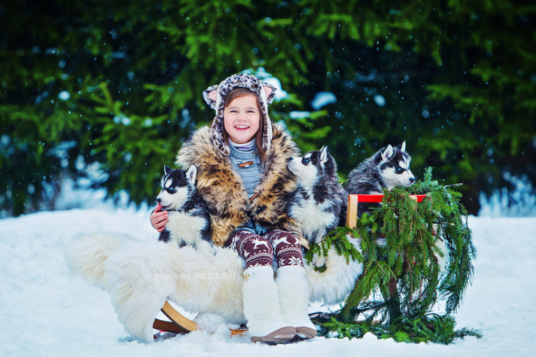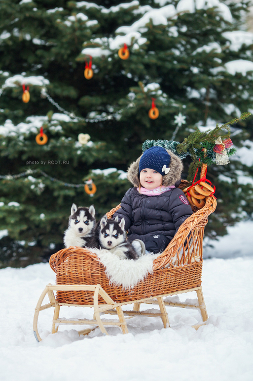 В съемке будут принимать участие: собаки и маленькие щенки хаски, курочка Пелагея, кролики. Из реквизита: плетённые сани укрытые настоящей волчьей шкурой(новинка этого сезона), корзинка с шишками, Дед Мороз. Из фото с символом года можно сделать подарочные календарики для бабушек и дедушек. 28 января - успейте забронировать.