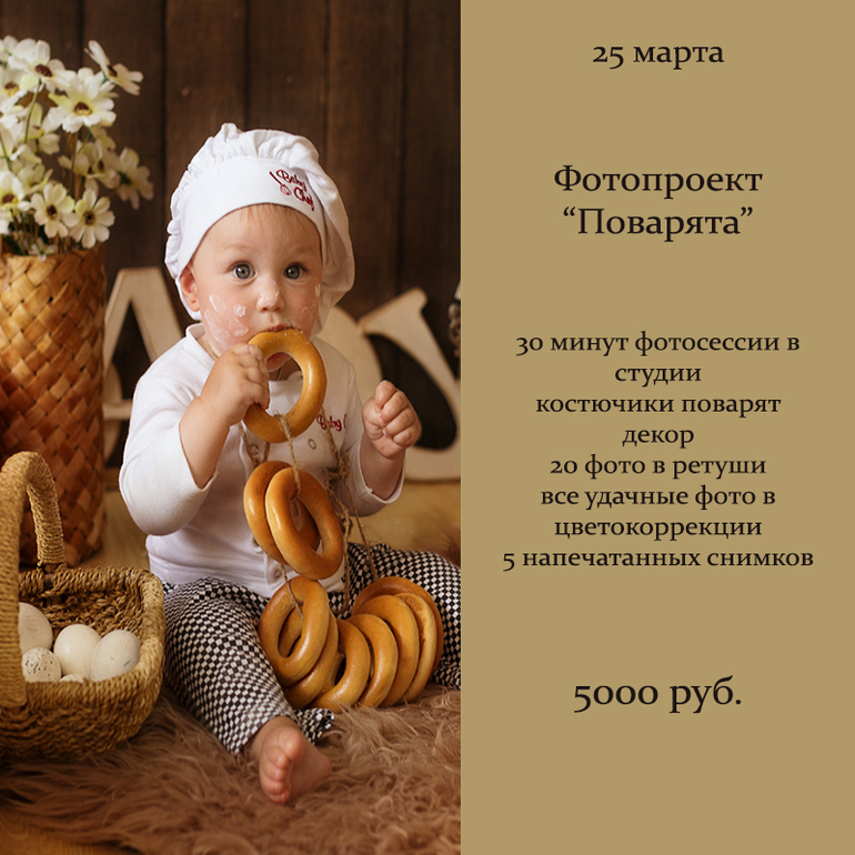 Фотографии, фотосессии, фотосеты25 марта мы снова снимаем наших чудесных маленьких поварят! Проект расчитан на детишек от 6 месяцев до 2,5 лет!
