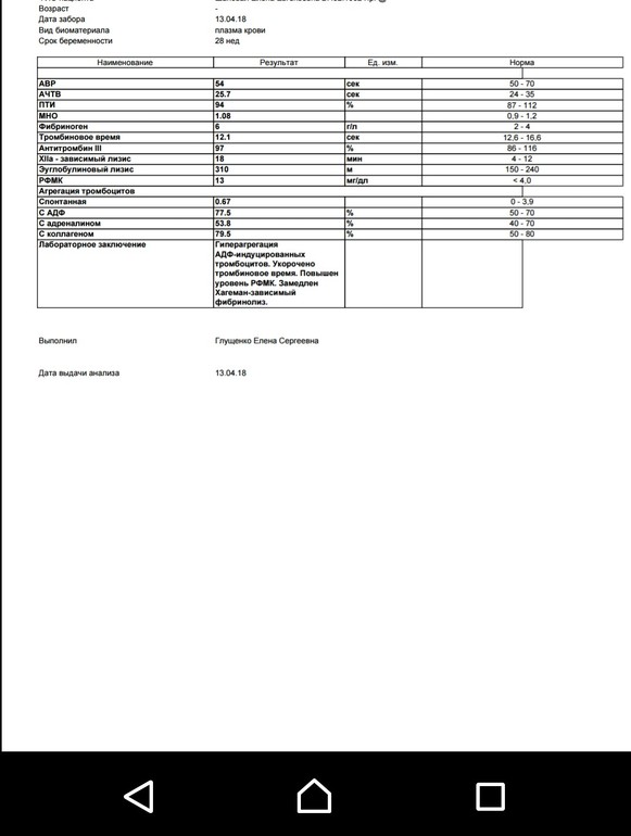 Добрый вечер, Елена! по результатам данной коагулограммы, вам необходимо обратиться на прием к гемостазиологу, так как есть явления гиперкоагуляции и гиперагрегации тромбоцитов, вам должны назначить, коррекцию препаратами с учетом ваших наследственных дефектов генов гемостаза, уровня гомоцистеина, наличие АТ к АФС и др., а также вашего статуса и анамнеза.Так же, во время беременности, рекомендуется принимать витаминно-минеральные комплексы для беременных содержащие оптимальную дозу фолиевой кислоты для оптимального развития плода. Однако, перед применением того или иного препарата Вам необходимо проконсультироваться со своим акушер-гинекологом, т.к. на рынке представлены различные препараты содержащие фолиевую кислоту, например Элевит.