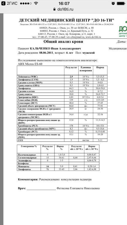 Здравствуйте всем. Год не болели, совсем забыла я как анализы читать, к педиатру завтра. Сыну почти 7, С 7 по 10 была высокая темп 39,5, с 10 начался кашель. Лечила только симптоматически- питье, увлажнение и Тп. С 11 темп нет. И вот вчера вечером опять 39,5. Сейчас 37,7. Нурофен сбивает на 8-12 часов, парацетамол почти не помогает. Я вижу по анализу вирус. В прошлом году болел гриппом В. Именно для него характерно улучшение и через день опять темп на пару дней. Пожалуйста дайте оценку, уж очень высокие лимфоциты.