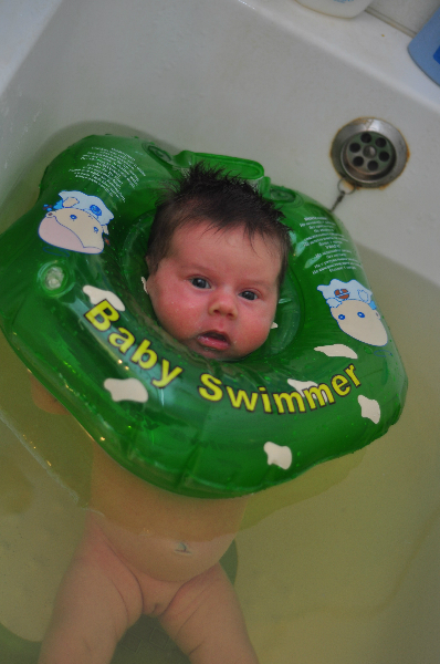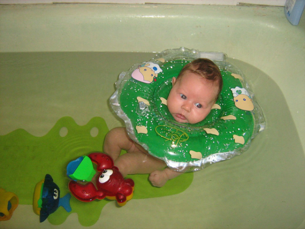 Алена, а ты в качелях не пристегиваешь? И что это за зеленая штука на дне ванны?