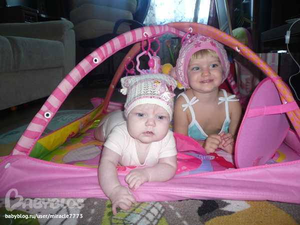 Наши детки (развитие, успехи, фото)Старшая у меня просто маниакальная любительница головных уборов. Теперь и младшая попала в шапочное рабство - Аленка приносит мне шапочку и прям заставила надеть ее на малышку)))):