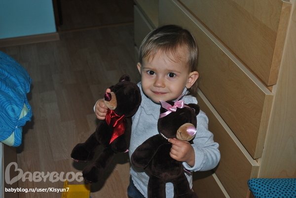нарядила Макса, Миля принесла мишек - я сразу фоткать..