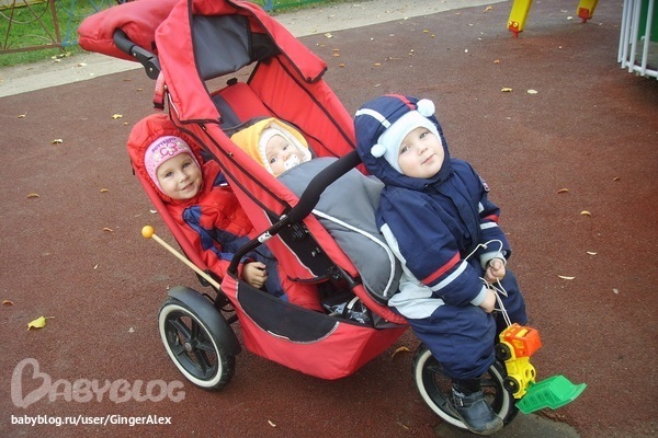 Привлекло в ней что можно сидеть друг на против друга, и лицом к маме, очень уж мне хочеться еще на маленького полюбоваться когда он спит, ну и старший хотя и отлично бегает сам, но значительно удобнее, упихать его в коляску и добежать до парка, а в магазин так просто обязательно, потому как иначе я его там просто потеряю, он ни секунды не устоит на месте. опять же, утомил все таки черный цвет.