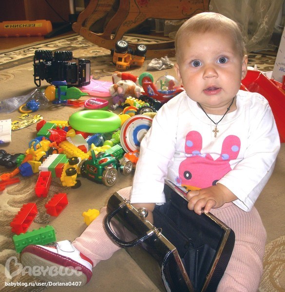 Настоящая барышня, мучает бабушкину стенькую сумочку, свое приданое))