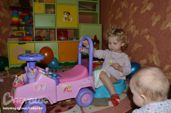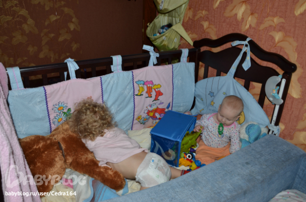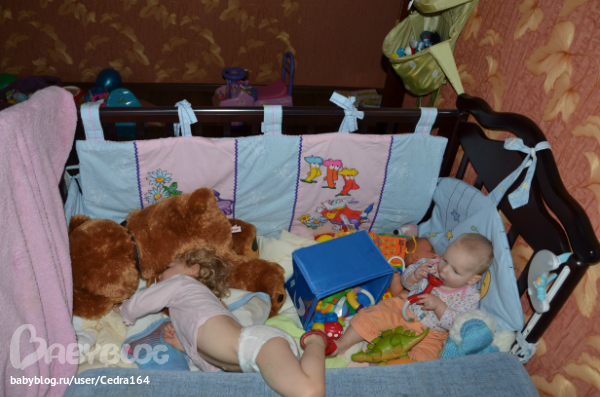Настя дооолго сидела, ковырялась с коробкой игрушек. Раньше 2х минут ей хватало.
