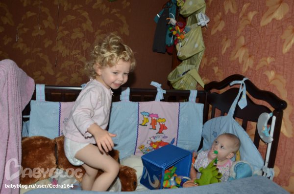 Настя как увидела, что мы с дивана ушли (кто на горшок, кто фотать, к нам попросилась) И все, и всем опять хорошо. Все не капризят.
