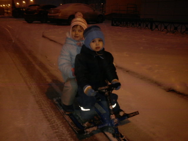 ааааа, а то старший просит снегокат...а младшая на санках сидит, вот я и думала может вы какой то способ изобрели))))