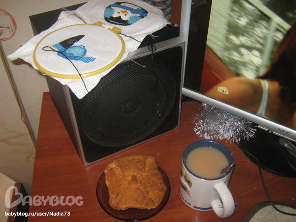 Дети спят, теперь время мама, папа появиться только завтра, можно попить чая под фильм, повышивать...