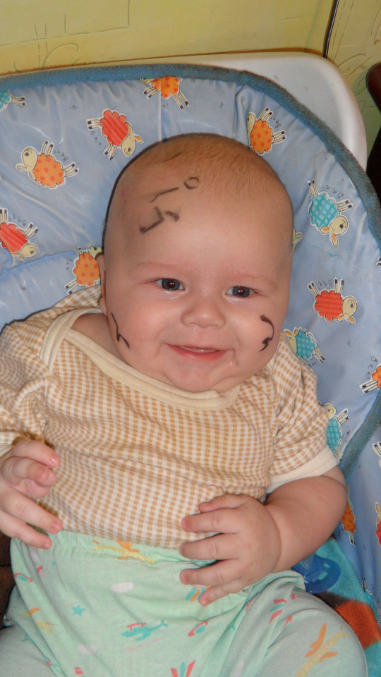 Да заюшки они у тебя и младшой и художница юная! Хорошо, что фото увидела, пока мой старшой спал, а то бы взял на заметку. Пока-то только себя разрисовывает ))))