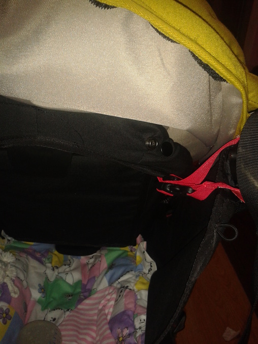 У меня муж тоже долго голову ломал, в итоге по инструкции нашел))) Так вот, если смотреть на допсидение, то с лева в верху, где сидение прилегает к основной раме, там и крепиться. В результате, мне даже не приходится его снимать, что-бы малышку положить, т.к. оно откидывается как дверка, достаточно просто крепления отстегнуть))) очень удобно, не ищу в подъезде места куды бы его определить)))))