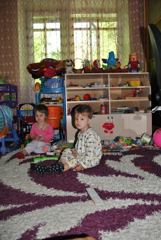 узнала свою квартиру=))с тремя бы, наверное, пол скрылся под игрушками=)