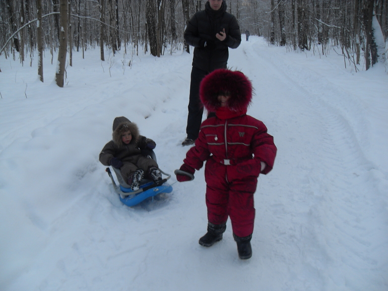 Вчера катались на горках, но к дому уже младший ревел, так как снял варежки и не хотел одевать, а потом не мог согреть руки. Сегодня не пошла.