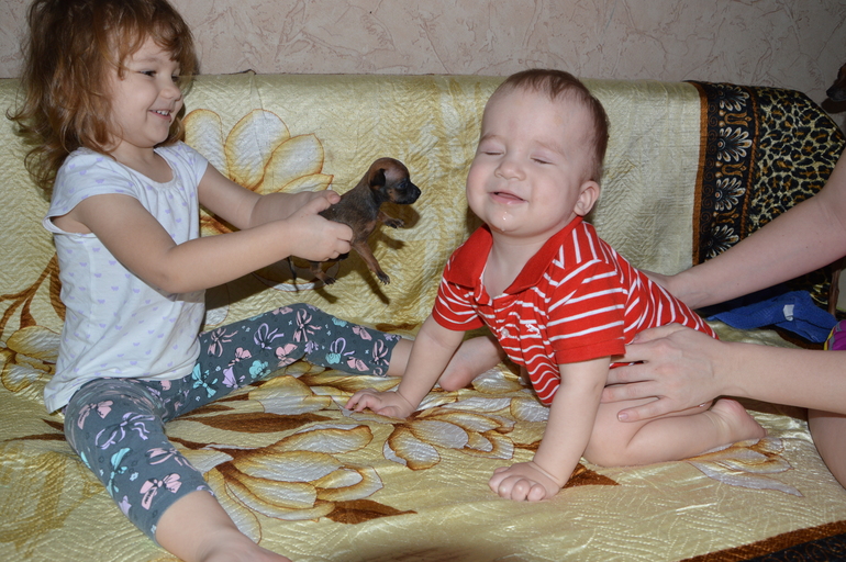 Наши детки (развитие, успехи, фото)Не выкладывала еще эти фотографии, но радости моих малышей не было предела. У нашей собачки появились снова детки, поэтому другие детки оказались в восторге)))