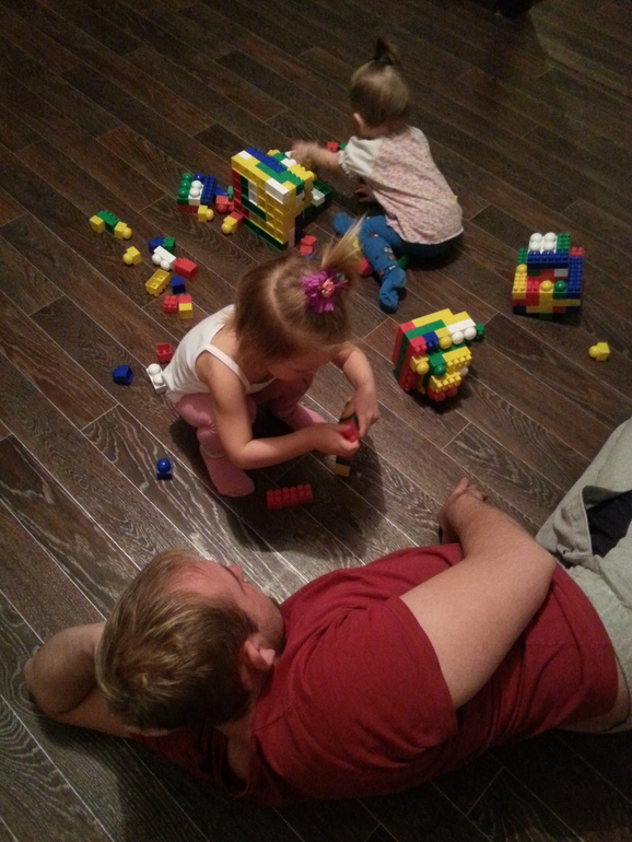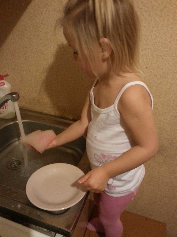 Периодически доча мешается, цепляясь за ноги и передвигаюсь по кухне я уже, волоча ее по полу)