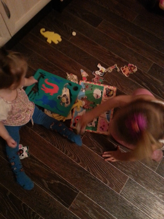 Один наш деньЯ таки собралась наконец написать в эту категорию и отсняла наш вчерашний день! (Извиняйте за качество - фото с телефона). Итак, главные герои дня: Альбина 2,9 и Кристина 11 мес. Поехали!
