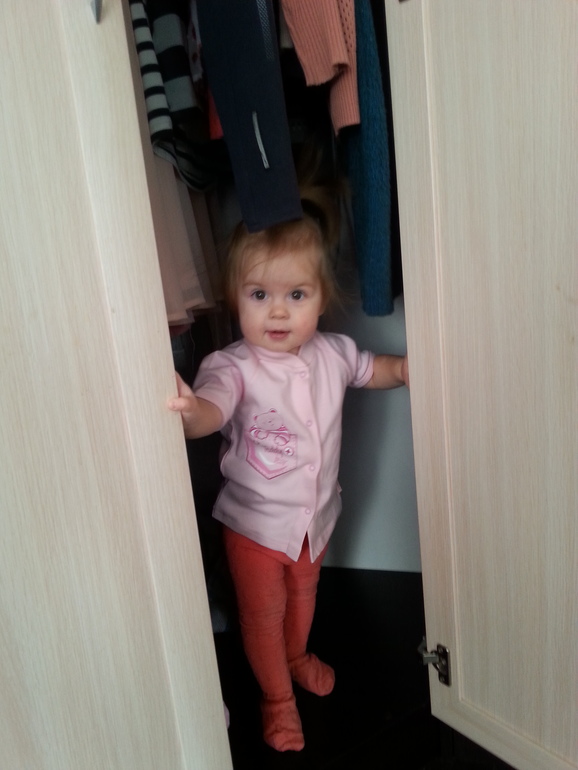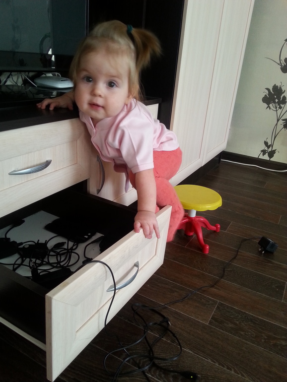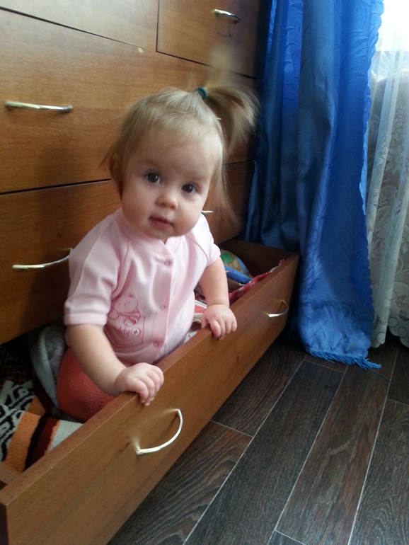 Одного ребенка нельзя оставить надолго, пока я была в ванной, Кристинка сама отодвинула ящик и забралась в комод.