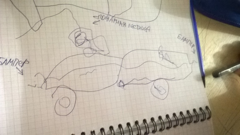 пожарная машина. коряво, естественно, зато есть попытка нарисовать бамперы и лестницу