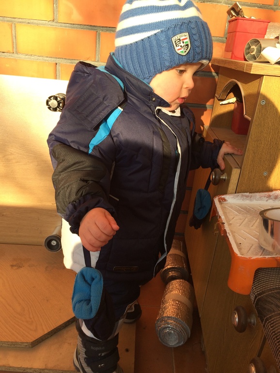 Наши условия с одной стороны лучше, чем у других- мы с бабулей и дедулей живем- они то сами со старшим погуляют, то одеть помогут! Это класс) с др стороны- наш этаж-второй, бегаешь вещи по погоде с обоих этажей собираешь, оба малыша абсолютно не самостоятельные- одеть старшего, вывести и младшей заняться- это не про нас. Кирилл начнет истерику. Плюс может уйти куда нибудь, потом попробуй найти.