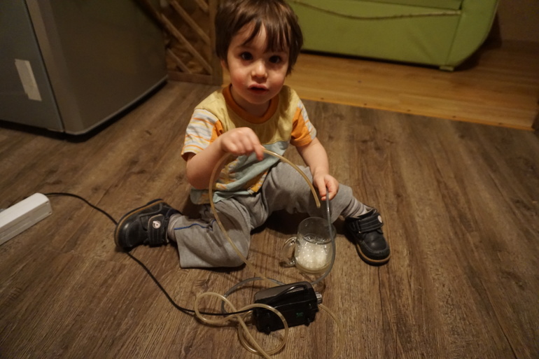 Сережка предложил дать ему Эспумизан, но я пока думала, что Вовин плач от голода, и не предала этому совету значения. Хоть он и капризничал, и мы меняли грудь каждые 7 минут, я умудрилась «почитать» с Леней книжку, и он уснул. Его попечитель тоже мог идти спать с чистой совестью, пока я наматывала круги по дому, уговаривая Вову уснуть хотя бы на часик, что бы я немного отдохнула, и мы дождались прилива молока. Но в какой то момент я попробовала грудь на наличие молока, и оно свободно текло! Агаа, неужели уже колики подоспели?... Дала плачущему Вовочке пол ложечки Эспумизана, он сквозь всхлипывания проглотил его и через секунду он спал! Будто временной кусочек вырезали)) - это было эффектно)!