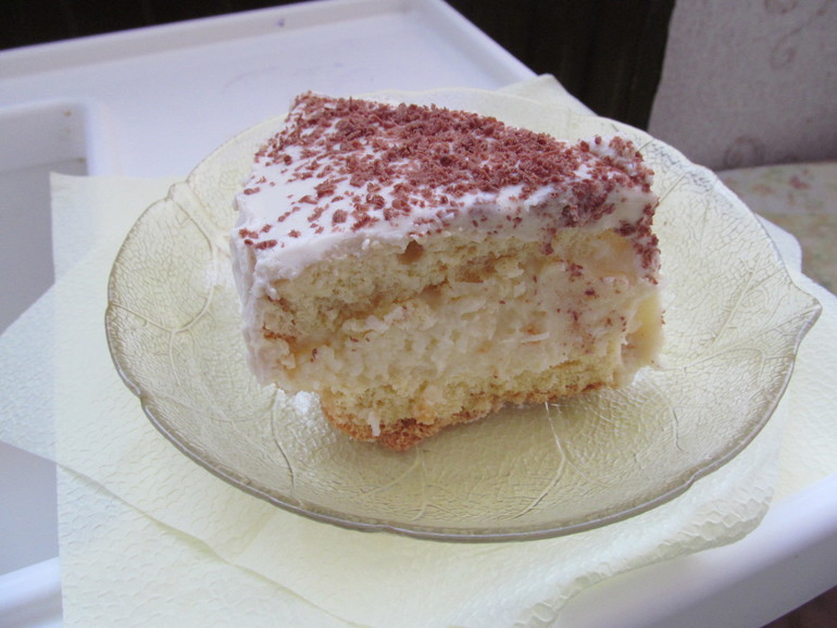 Приехав с покатушек , безумно захотелось тортика. Нежный бисквит и кокосовая начинка. Софико говорит ями-ями . Уж очень любит мамские тортики.