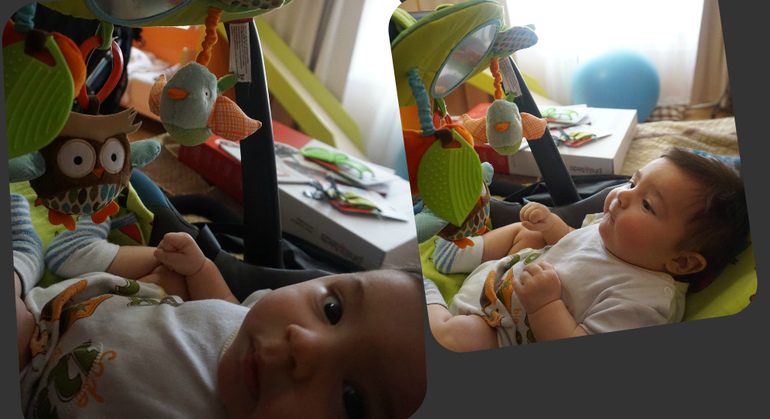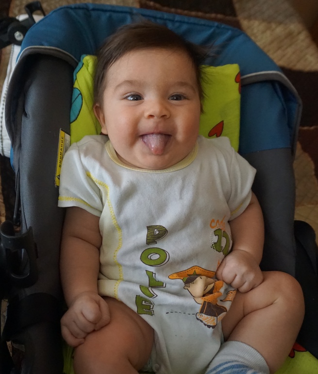 Довольная)), а Ленька то как полюбил колясочку, всю исследовал, везде полежал).