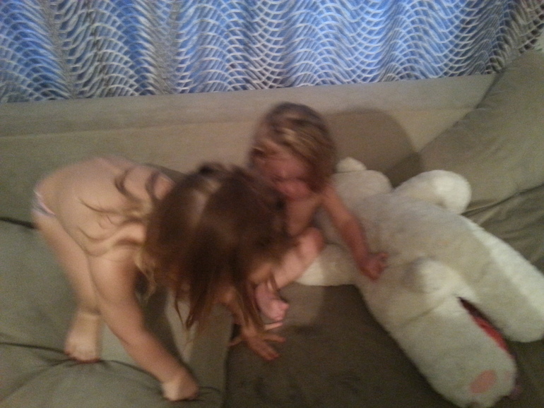 Девочки уже капризничают, хотят спать. Быстро их в душ