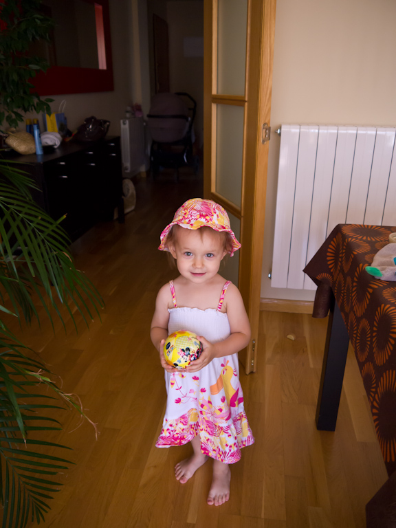 Старшая собирается в парикмахерскую, не спрашивайте зачем ей там мячик))