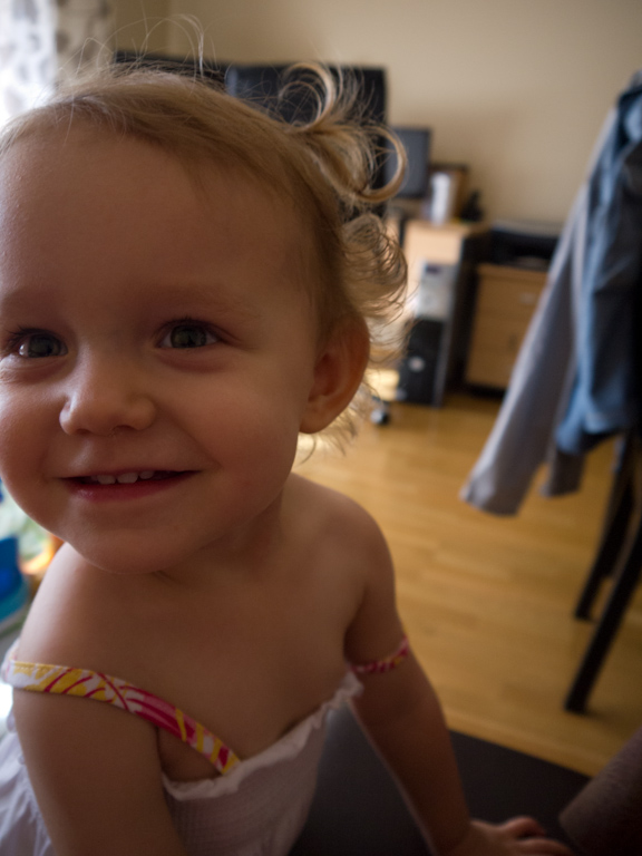 Валерия потихоньку начинает говорить. Жутко радуется, когда ее понимают, иногда пускается в довольно сложные разъяснения, и я почти всегда понимаю о чем она говорит))