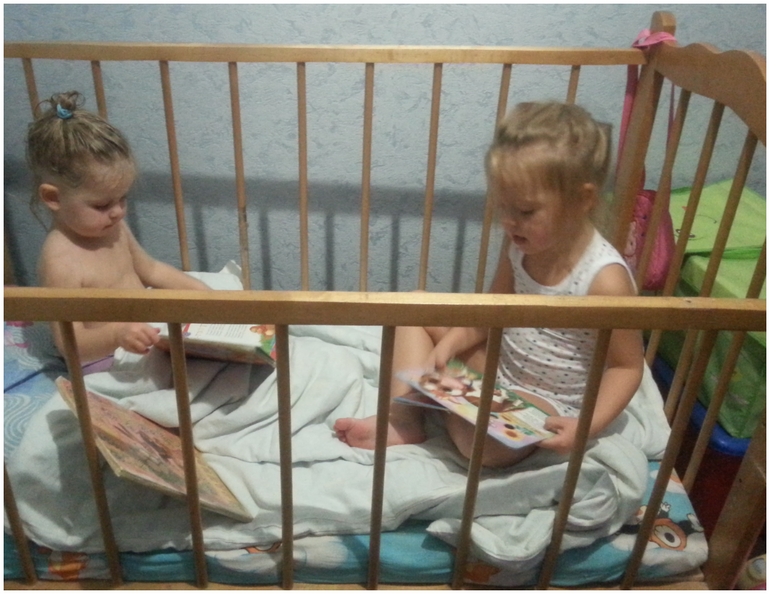 Да, во втором случае они особенно дружны) Сидят тихо-тихо играют, листают книжки или просто болтают и смеются. Все, что угодно, только бы мама не рявкнула это ненавистное "спать" и ни погасила свет))