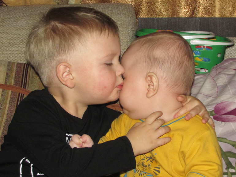Кирюша любит братика и радуется ему. Вообще Кирилл очень улыбчивый ребенок.