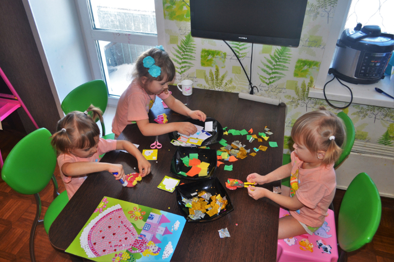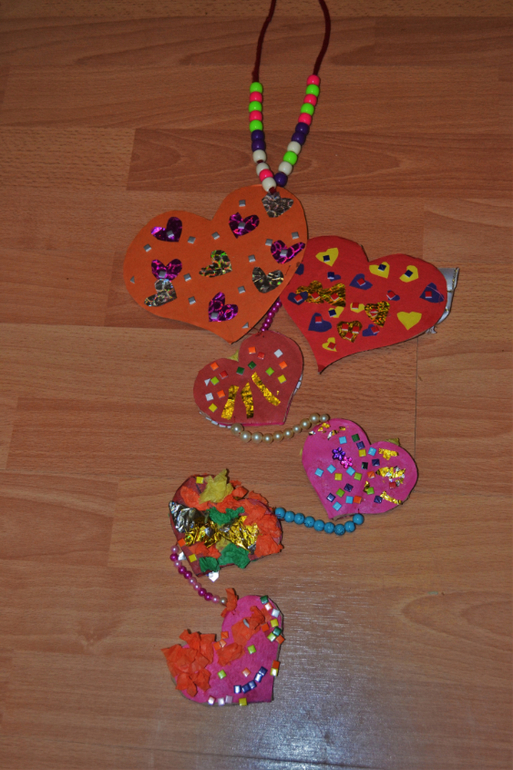 На бусы иголкой нанизывала я. А в остальном, всё сделали сами под моим руководством.