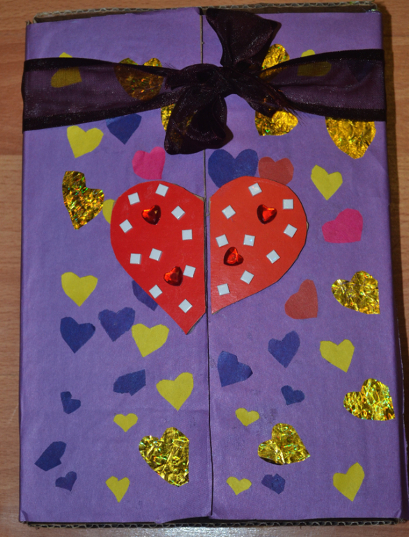 Себя и Сияну они делали сами. Себя с мужем я сделала. И с другой стороны дети тоже сами украсили все валентинки: