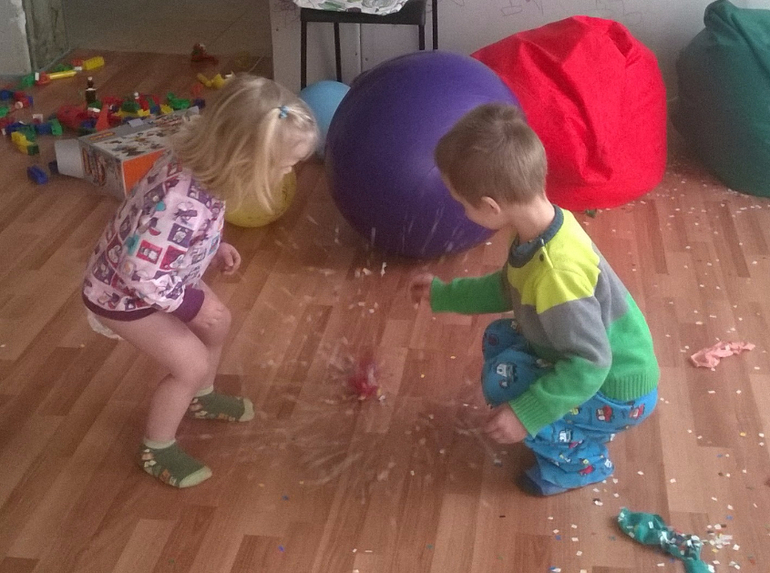 Порадовало это их, не передать как! Всё совпало: и лопание, и поиски безделушки. Порадовало так, что эти безделушки на подъёме эмоций родили весёлую игру "ку-ку"