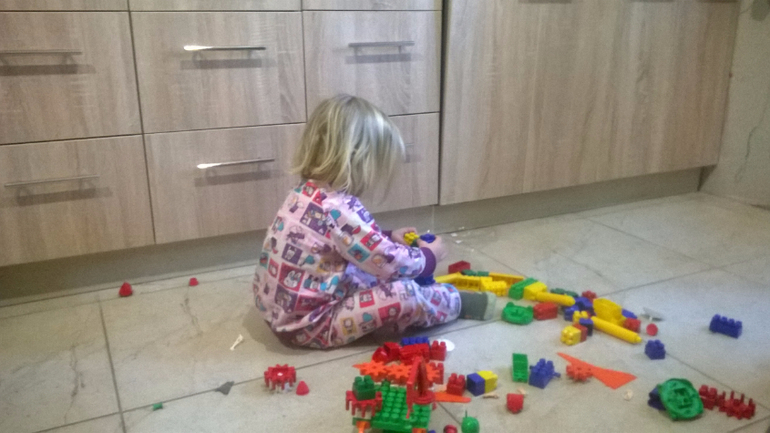 Дальше о ней будет мало, честное слово, она целый день играла в шарики)) На двухлетие мы ей не покупали подарок, я притащила ей ворох летающих шаров, больше и ничего не надо было, прошло 5 месяцев... ситуация не изменилась))Немного построила...