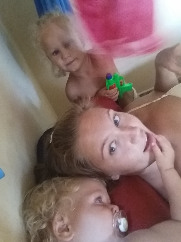 Старшие девочки (Алёна и Милана) плескались у берега, а мы с Кариной брали мелких, и шли поглубже, там малыши плавали у нас на руках.